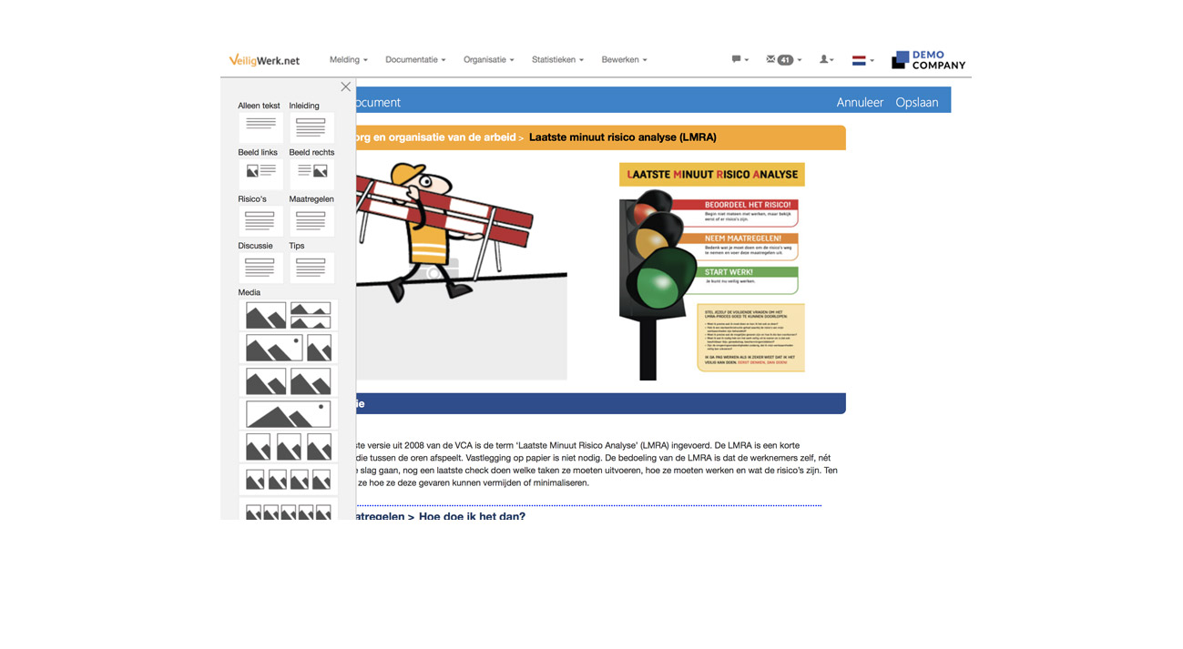 Het VeiligWerk platform is beschikbaar in het Nederlands, Frans en Engels. Op aanvraag zijn additionele talen mogelijk.